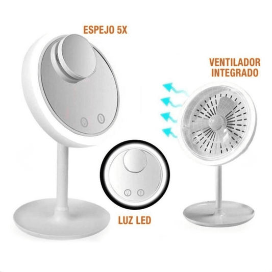 Ahorra $14.000Espejo de Maquillaje LED 3 en 1 con Ventilador y Lupa 5X
